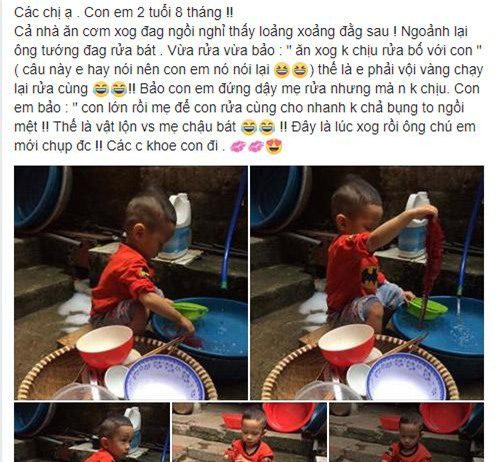 Thấy bố mẹ ăn xong không dọn, bé trai vừa rửa bát vừa nói câu khiến cả nhà “đứng hình”