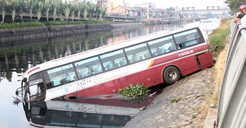 Ôtô khách lao xuống kênh ở Sài Gòn
