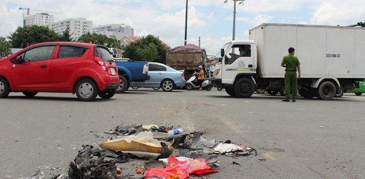 Xe ben cán nát xe máy trên đại lộ Phạm Văn Đồng