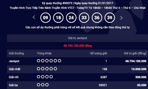 Số đỏ đầu năm, tết dương lịch trúng độc đắc 49 tỷ