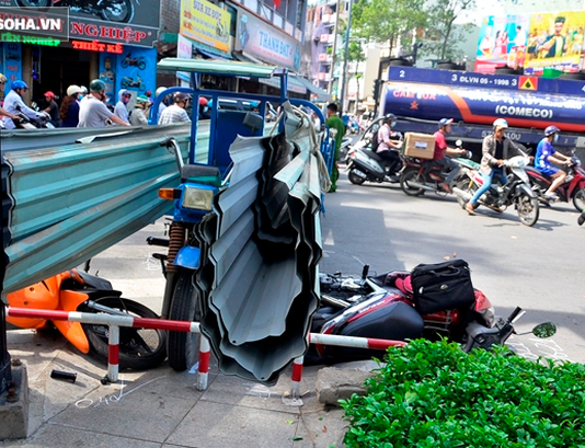 TP.HCM: Xe ba gác chở tôn cứa vào người đi đường khiến 2 người nhập viện