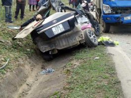 Xế hộp đối đầu xe tải, 4 người chết