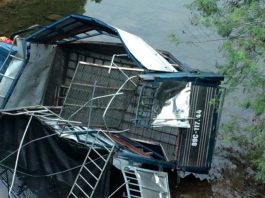 Xe chở lợn mất lái lao xuống sông bẹp dúm, tài xế thoát chết