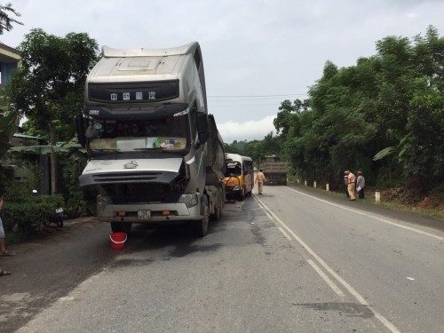 Va chạm xe đầu kéo, xe buýt bẹp đầu, nữ hành khách tử vong