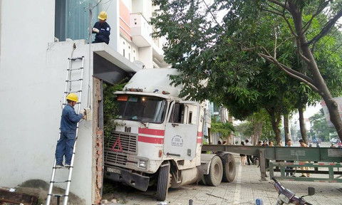 Xe container đâm sầm vào ngôi nhà 3 tầng trên phố