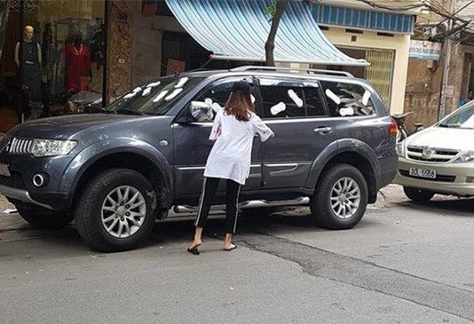 Ô tô đỗ chắn lối cửa nhà và hành động dán BVS, sơn đầy lên xe gây tranh cãi
