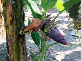 Cây chuối siêu lạ, trổ buồng ngang thân