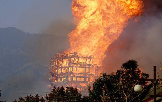 Tháp gỗ thời nhà Minh ở TQ cháy rừng rực trong biển lửa